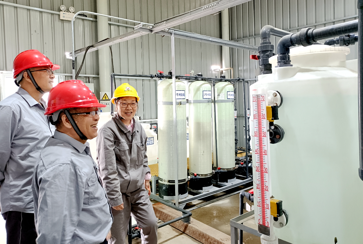 新天煤化工、白馬湖實驗室領(lǐng)導(dǎo)共同見證順利產(chǎn)出酸堿。 李海勝 攝