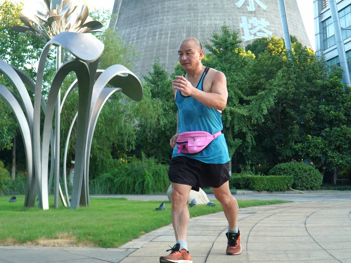 鮑偉明在浙能蘭電廠(生活區(qū))區(qū)內(nèi)跑步鍛煉。 何云玲 攝