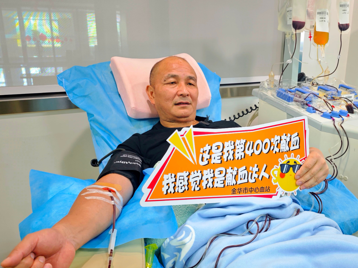 本網(wǎng)訊 7月31日,1965年出生的浙能蘭溪發(fā)電公司職工鮑偉明接到電話后來到金華市中心血站,身體檢查合格后自若地躺在獻(xiàn)血床上,熟練地拿著采血球一握一松,看著身體里的殷紅熱血分離出淡黃色的血小板。今天,鮑師傅又獻(xiàn)出雙份血小板,兩個(gè)治療量,為挽救2個(gè)病人延緩生命貢獻(xiàn)力量。鮑偉明成為浙江省首位達(dá)400次無償獻(xiàn)血者,被稱為“浙江第一獻(xiàn)血達(dá)人”。