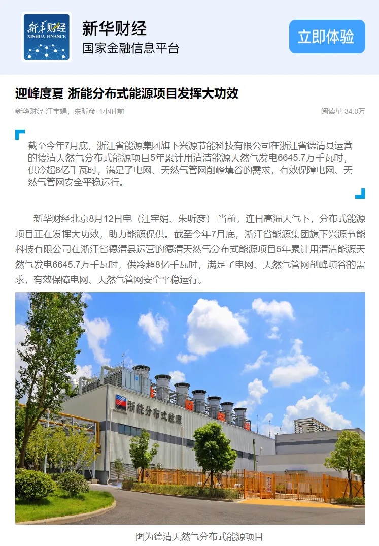 △8月12日,新華財(cái)經(jīng)報(bào)道《迎峰度夏 浙能分布式能源項(xiàng)目發(fā)揮大功效》。