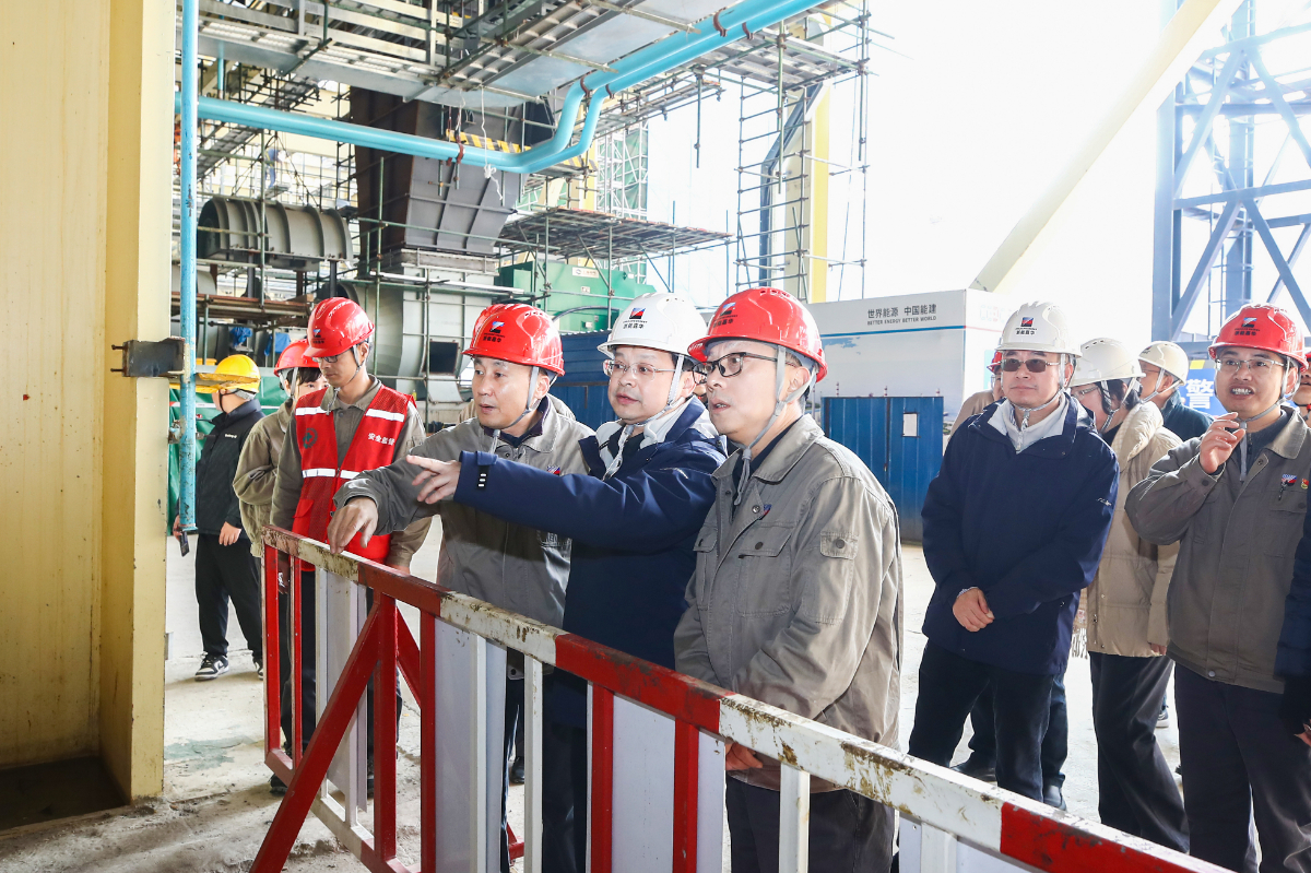 倪震一行現場調研嘉電四期9號機組建設情況。 王重陽 攝