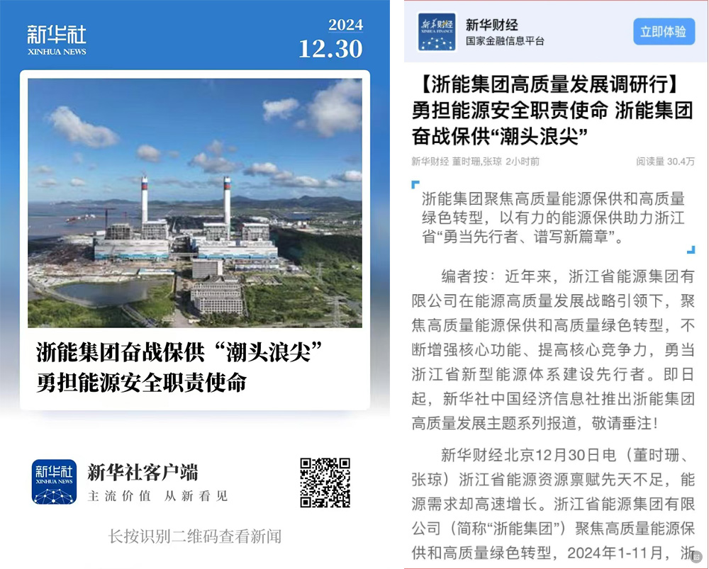 今日,新華社推出浙能集團高質量發展主題系列報道,首期刊發《勇擔能源安全職責使命 浙能集團奮戰保供“潮頭浪尖”》。