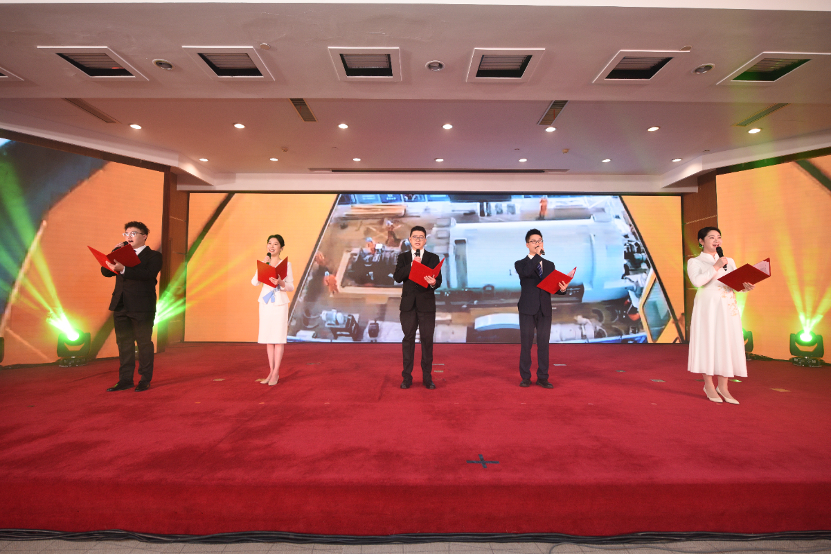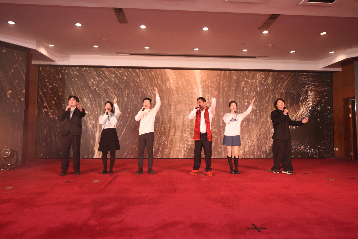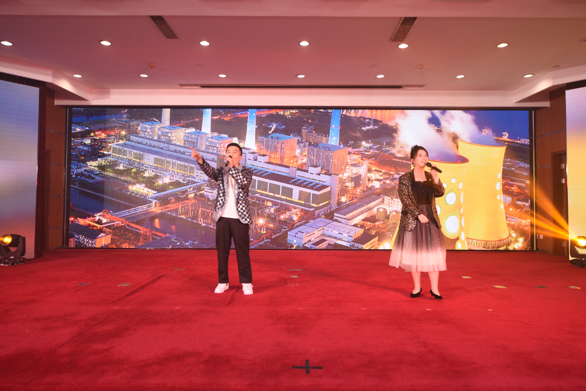 團(tuán)拜會上,“向新而行 能創(chuàng)未來”主題文藝演出以“致敬2024祝福2025”開場,展示集團(tuán)2024年度十大新聞,致敬在過去一年里奮力拼搏、擔(dān)當(dāng)作為的浙能人。舞蹈《前程螣螣》,紅燈籠與演員們靈動的身姿相互輝映,營造出喜慶而又充滿希望的氛圍;朗誦《了不起的你》由浙江省勞動模范張曉煒和青年職工共同演繹,用真摯情感和鏗鏘語調(diào)贊美拼搏奮進(jìn)的每一位浙能人;歌曲串燒《熠熠的光》 由五首歌曲相互串聯(lián),充滿力量與希望,如熠熠的光,唱出了浙能人的奮斗與夢想;原創(chuàng)說唱《電廠英雄》以節(jié)奏強(qiáng)烈的旋律和充滿力量的詞句,闡述了電廠工作者在崗位上的堅守與付出,歌頌了所有為能源事業(yè)奉獻(xiàn)的英雄們,該作品入選2024年全國總工會網(wǎng)絡(luò)正能量歌曲征集活動百強(qiáng)名單,被評為聲暖人心歌曲;星火說《在世界屋脊追風(fēng)逐光》通過情景再現(xiàn)的形式,講述了一批批浙能人奔赴大西北,克服重重困難的故事,傳遞出浙能人對能源事業(yè)的執(zhí)著追求和奉獻(xiàn)精神,該節(jié)目曾在“中國夢·勞動美——凝心鑄魂跟黨走 團(tuán)結(jié)奮斗新征程”全省職工演講比賽中斬獲金獎;歌曲《向未來》以激昂的旋律和奮進(jìn)的歌詞鼓舞人心,唱響了浙能集團(tuán)對未來的期待與憧憬,讓每一位浙能人心中都燃起了奮進(jìn)的火焰;音樂劇《能創(chuàng)未來》圍繞白馬湖實驗室綠色甲醇創(chuàng)新項目的研發(fā)應(yīng)用,講述了浙能人在能源創(chuàng)新道路上的堅持與拼搏;舞蹈串燒《上春山》結(jié)合不同風(fēng)格的舞蹈,傳遞著浙能集團(tuán)的春山可望、歲月可為;合唱《璀璨浙能人》用激昂的歌聲抒發(fā)著浙能人勇于探索、敢于創(chuàng)新的精神,展現(xiàn)了浙能集團(tuán)在能源領(lǐng)域不斷創(chuàng)新、砥礪前行的決心,浙能集團(tuán)全體職工攜手向著更加輝煌的2025年闊步前行!