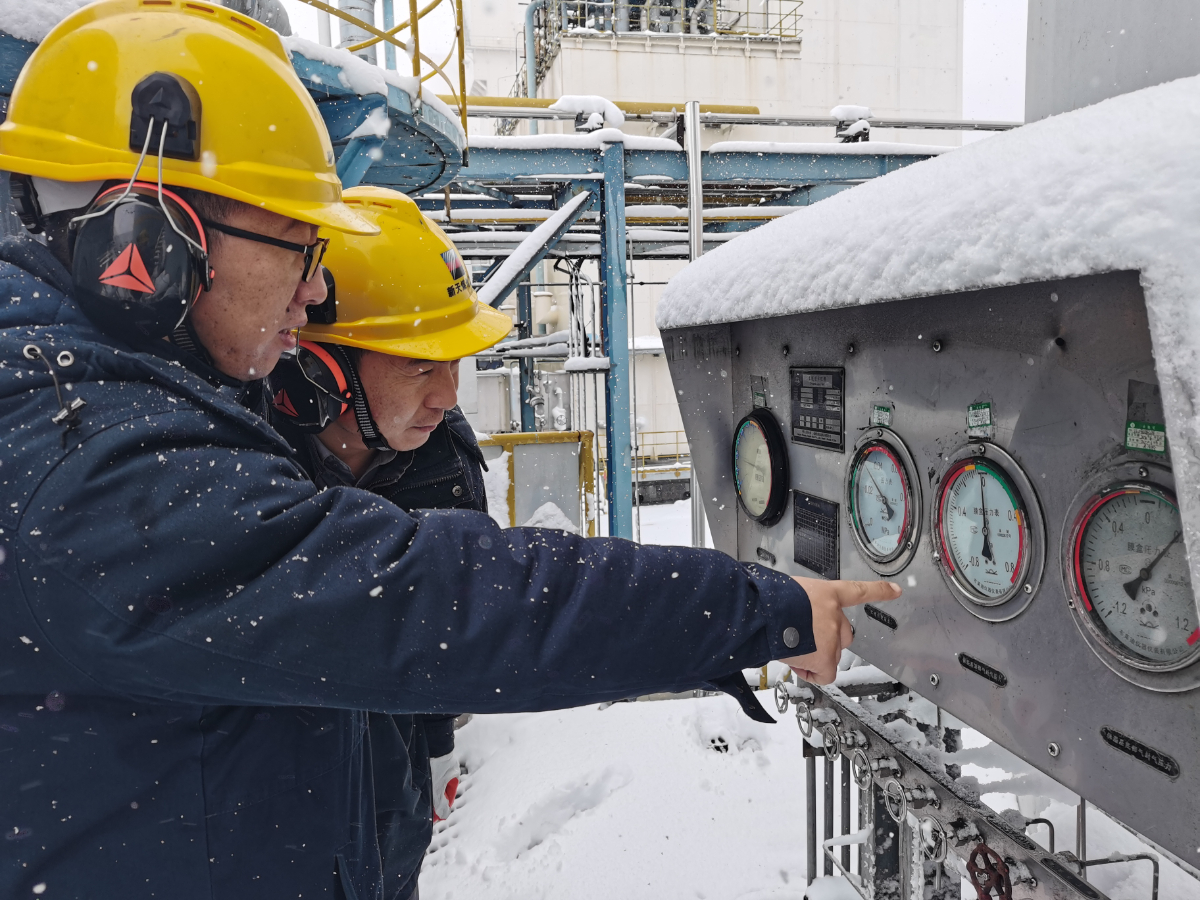 迎峰度冬期間,浙能新天煤化工現場操作人員正在認真巡檢。 祁媛 攝