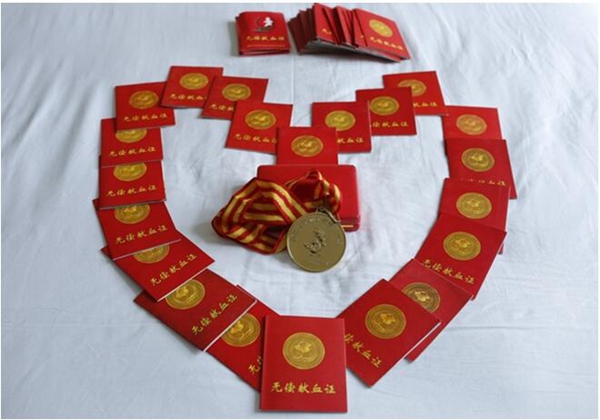 他除了先后六次被衛生部、紅十字總會、解放軍總后勤部授予的“全國無償獻血貢獻獎金獎”,還被授予其他大大小小各項榮譽,連續5屆獲得”浙能蘭電道德風尚標兵”,”蘭電十年感動人物“,浙江省國資委“省屬企業最美員工稱號”。