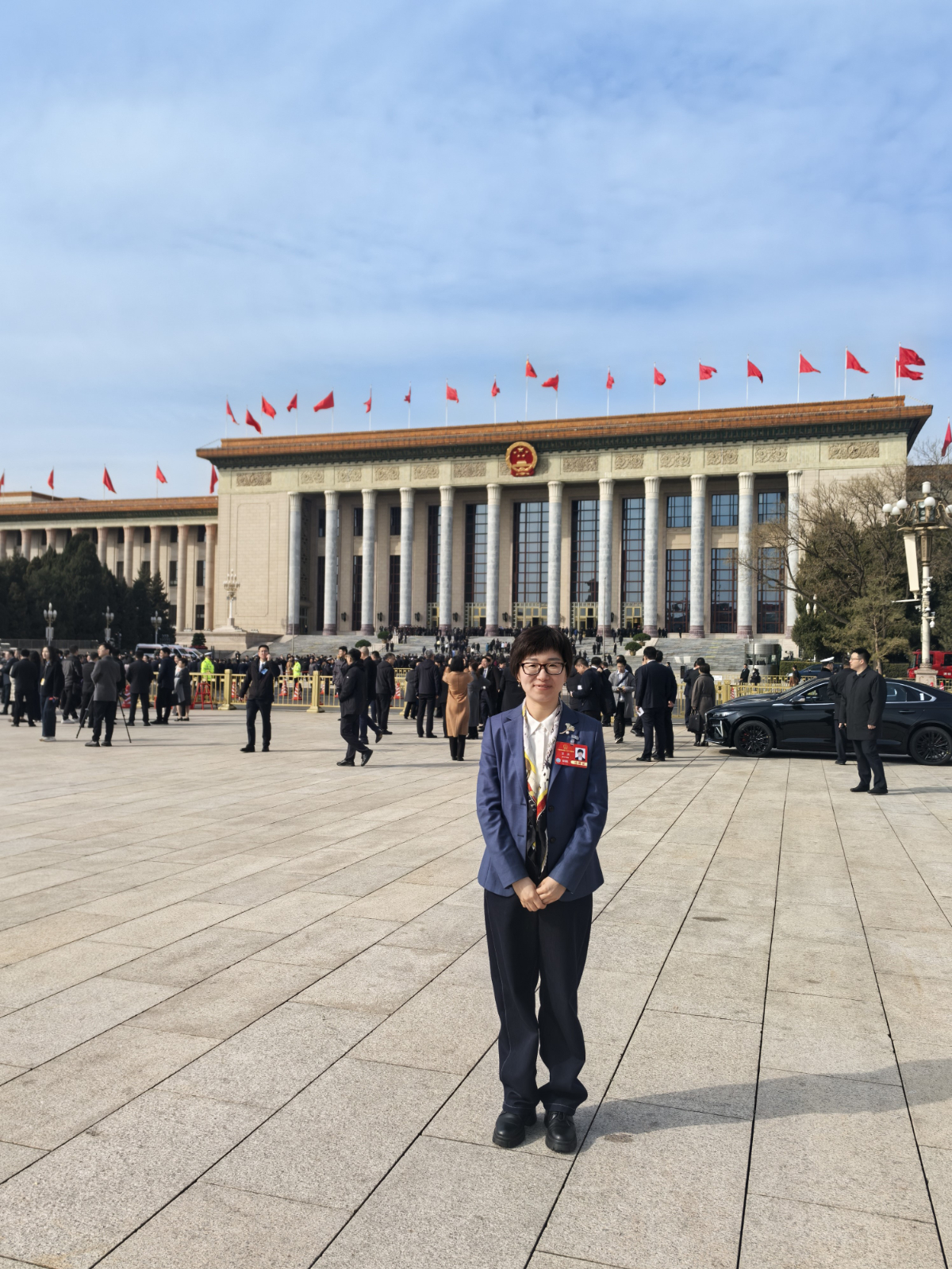 王潔代表在北京人民大會堂前。 王潔 提供