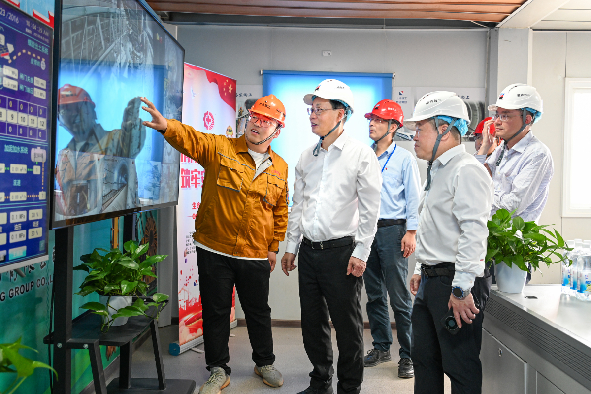 浙能集團(tuán)黨委書記、董事長劉盛輝赴浙能臺二電實(shí)地查看二期建設(shè)情況,并了解排水盾構(gòu)情況。 俞琬 攝