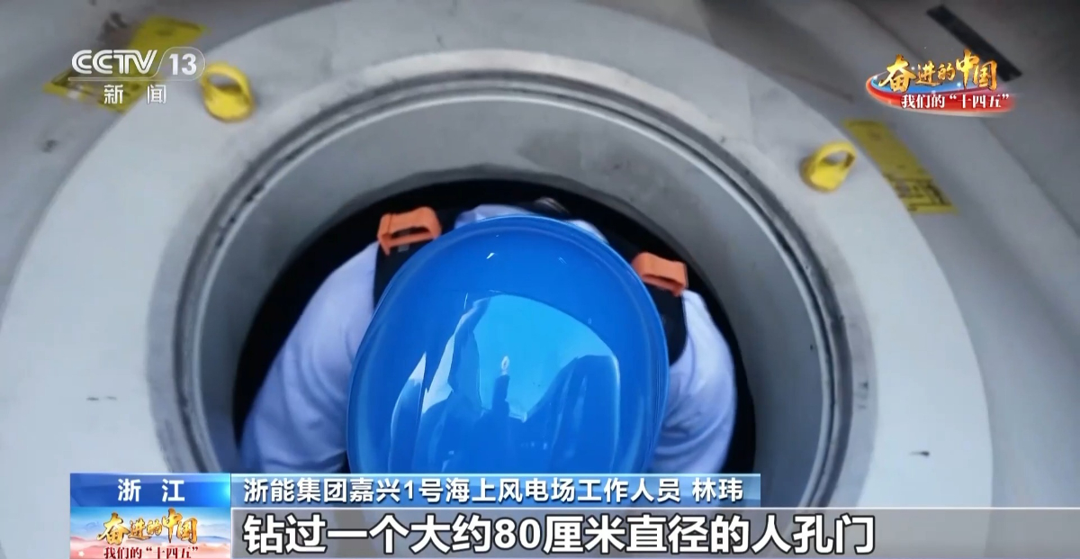 中央電視臺(tái)新聞?lì)l道《奮進(jìn)的中國(guó) 我們的“十四五”》報(bào)道嘉興1號(hào)海上風(fēng)電場(chǎng)風(fēng)機(jī)維護(hù)人員的一天。 周晨 提供
