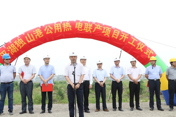 浙能集團(tuán)副總經(jīng)理朱松強(qiáng)、科服分公司總經(jīng)理華國鈞、集團(tuán)建設(shè)部副主任潘華林、興源節(jié)能公司董事長王靜毅、電建公司董事長楊志明,平湖市、獨(dú)山港鎮(zhèn)及各相關(guān)單位負(fù)責(zé)人參加了項目開工儀式。