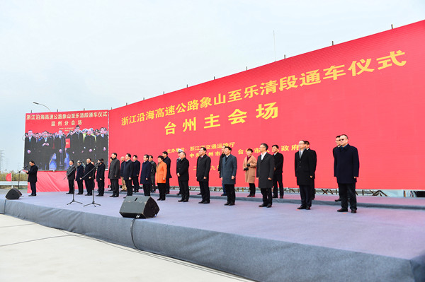 1月16日上午,浙江沿海高速公路全線開(kāi)通。圖為開(kāi)通儀式臺(tái)州主會(huì)場(chǎng)。孫喜華 攝