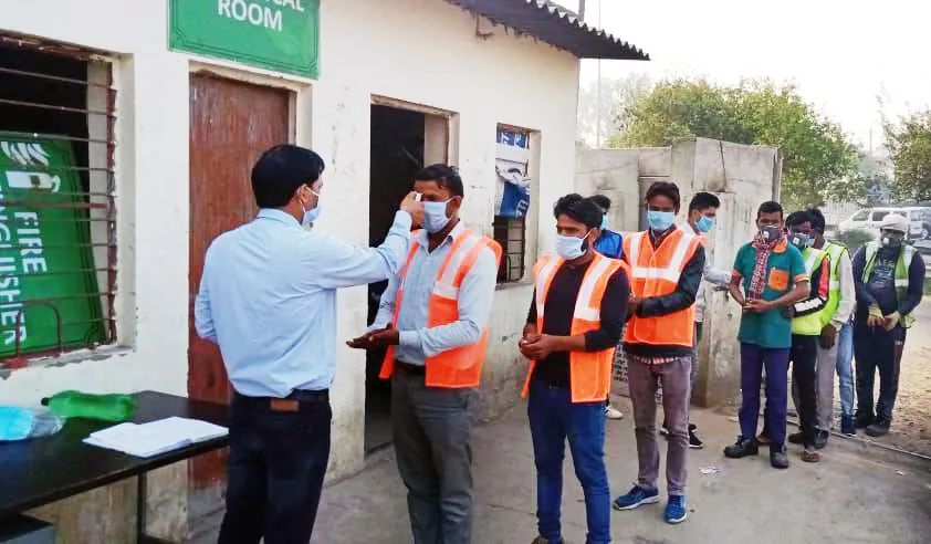 2020年3月20日,浙能錦江環境印度Beri Bagn 垃圾中轉站員工上班前,所有員工測量體溫合格后才可進入工作區域。