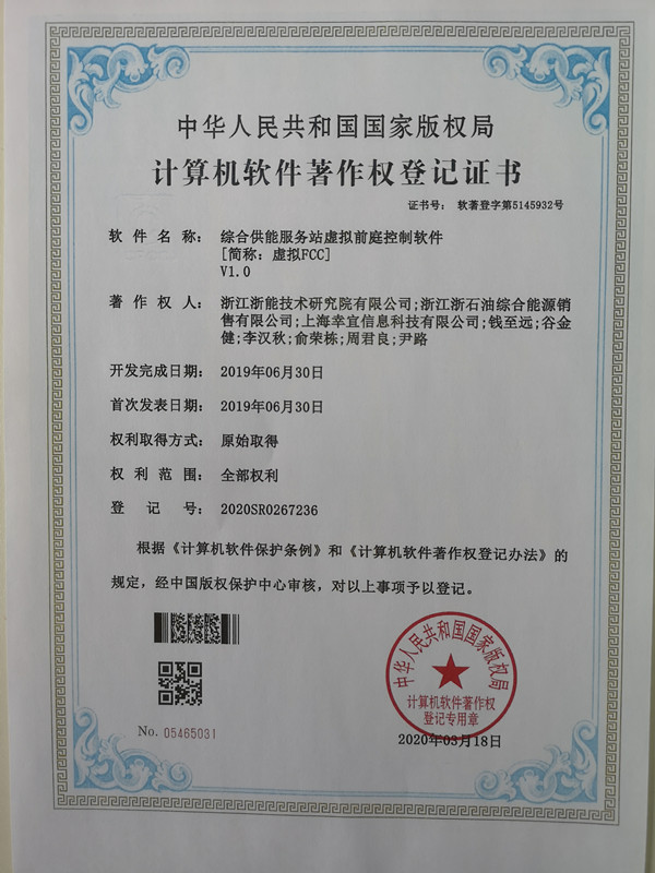 浙石油銷售公司科技項目獲得國家軟件著作權