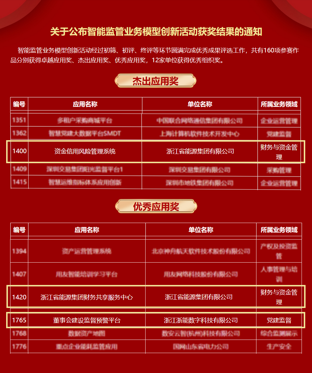 國務(wù)院國資委智能監(jiān)管業(yè)務(wù)模型創(chuàng)新活動(dòng)獲獎(jiǎng)名單揭曉 浙能多個(gè)項(xiàng)目上榜
