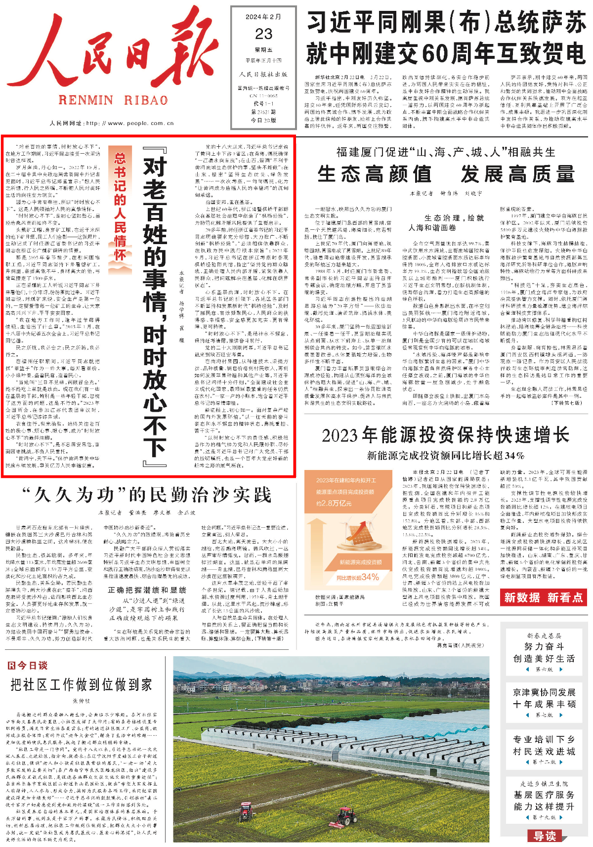 2月23日,《人民日報》頭版頭條刊登《總書記的人民情懷》。 《人民日報》 提供