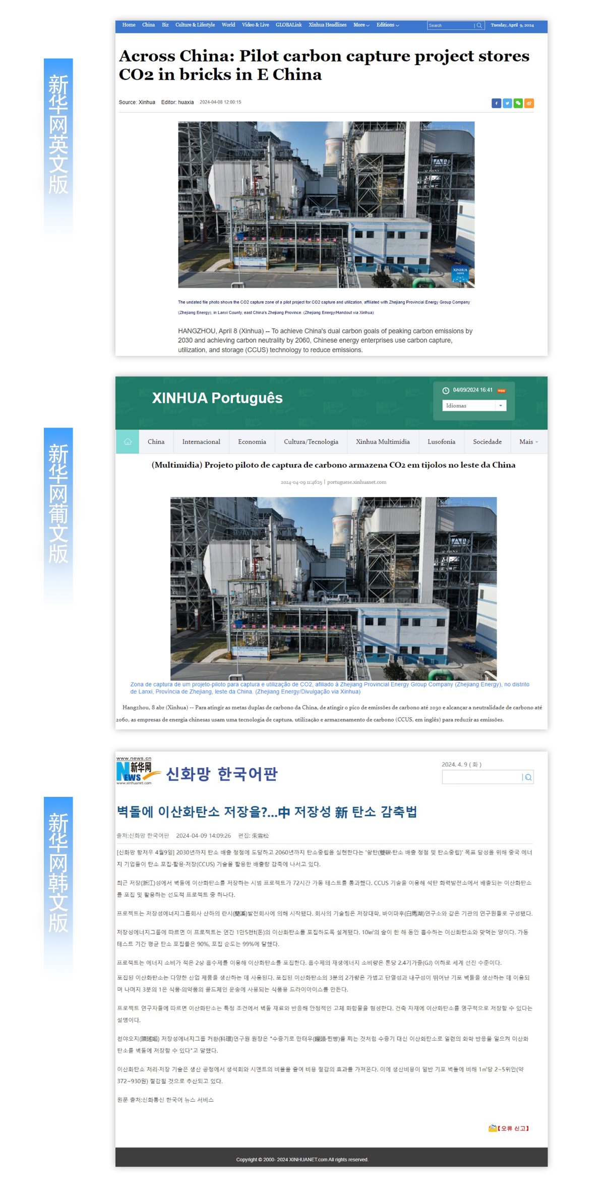 4月8日,新華社刊發(fā)英文、葡文、韓文外文通稿,報道浙能集團“捕碳高手”。 新華社 圖